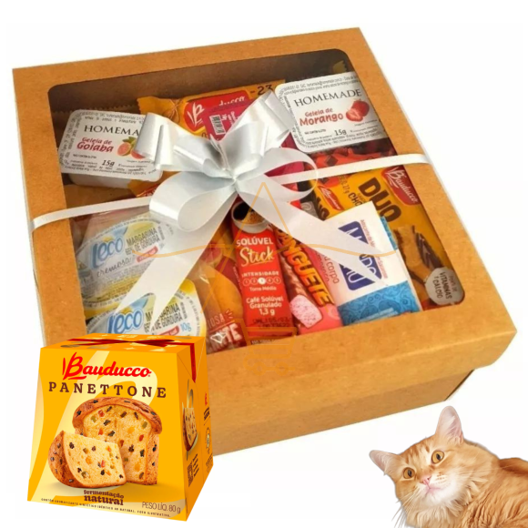Cesta De Café Da Manhã 30 Itens Na Caixa Presente Lembrança Panettone