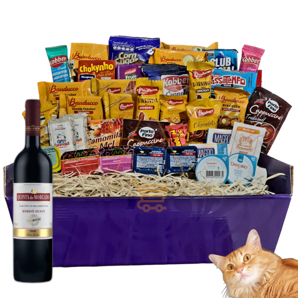 Cesta De Cafe Da Manhã Com Vinho Presente Aniversario